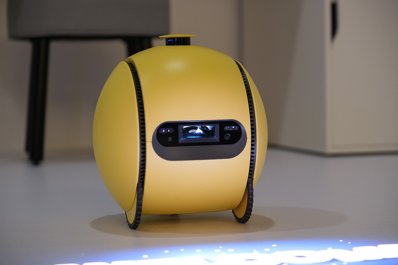 이 작은 노란 구체형 로봇은 집 안을 자유롭게 돌아다니며